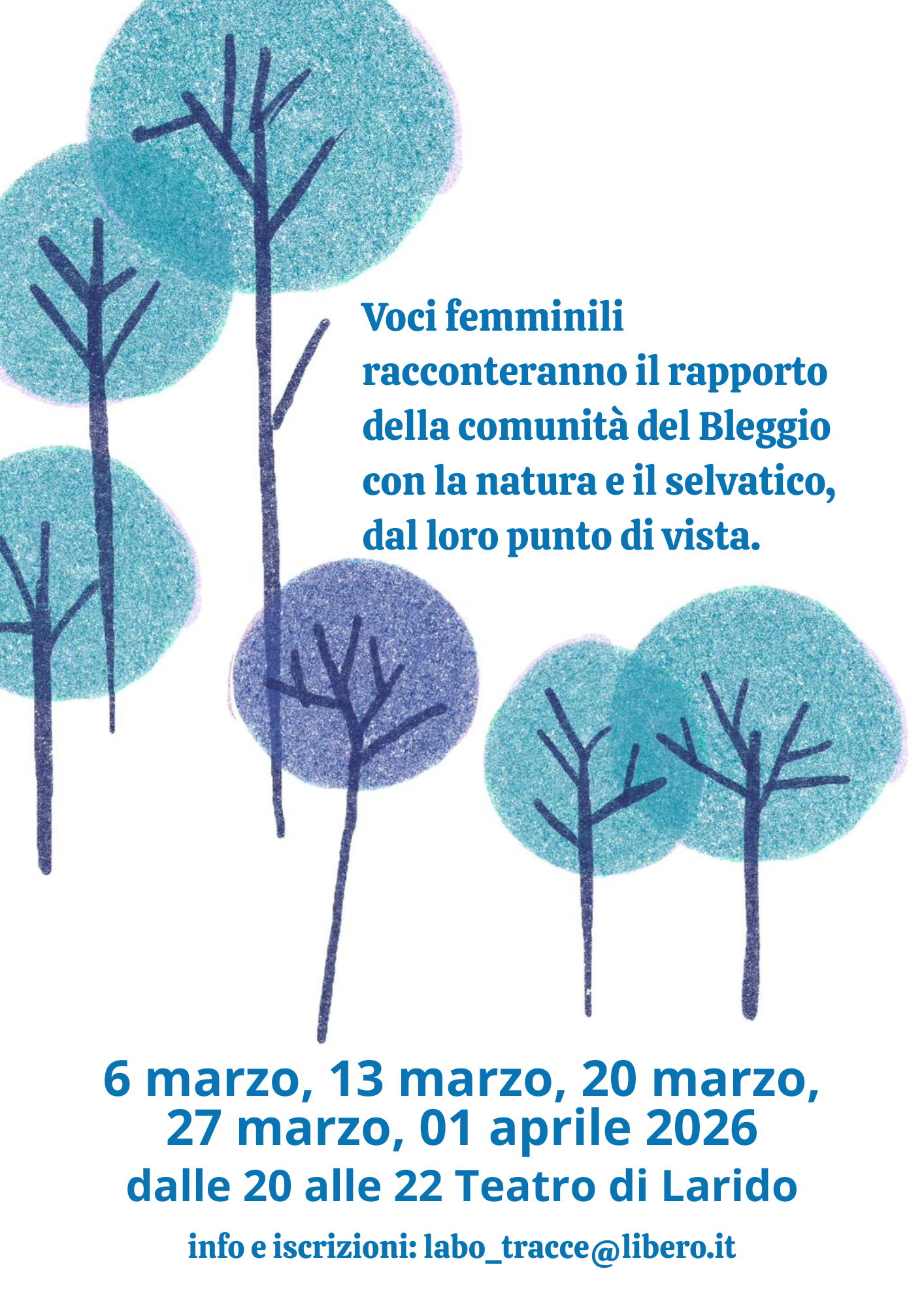Il laboratorio, articolato in cinque incontri a cadenza settimanale (ogni venerdì, dalle 20 alle 22), sarà rivolto alle donne dai 15 anni in su, con l’obiettivo di raccogliere e dare forma alle memorie, alle esperienze e alle visioni sul rapporto uomo-natura tra passato, presente e futuro. Il progetto nasce dall’idea che il nostro legame con la natura e il selvatico rappresenti un filo rosso fondamentale per comprendere il passato, affrontare il presente e immaginare il futuro che desideriamo costruire come comunità.